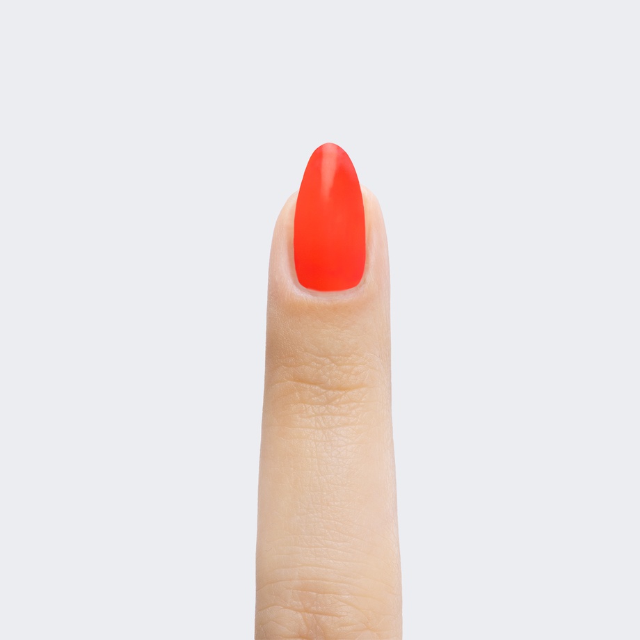 The soft brightness of this neon coral polish doesn’t waste a minute.