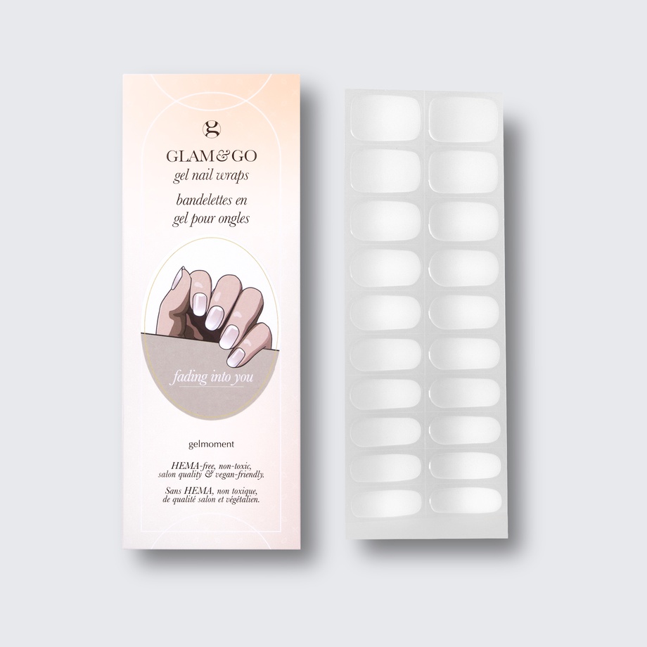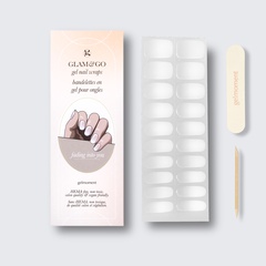 Our GLAM & GO gel nail wraps ensure that no matter how complex your chosen nail design, the application process remains incredibly simple. Our GLAM & GO gel nail wraps require no glue, base coat, or top coat—just peel them off the packaging, apply them to your nail, trim to size, cure twice, and voilà!
