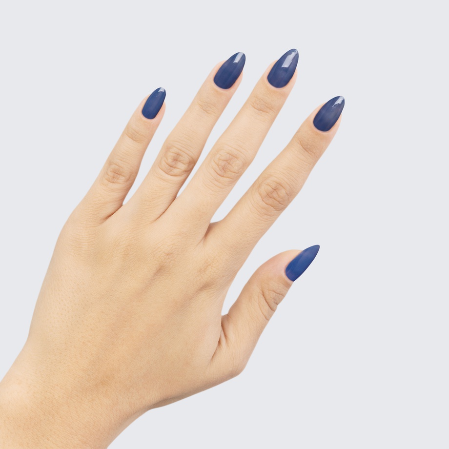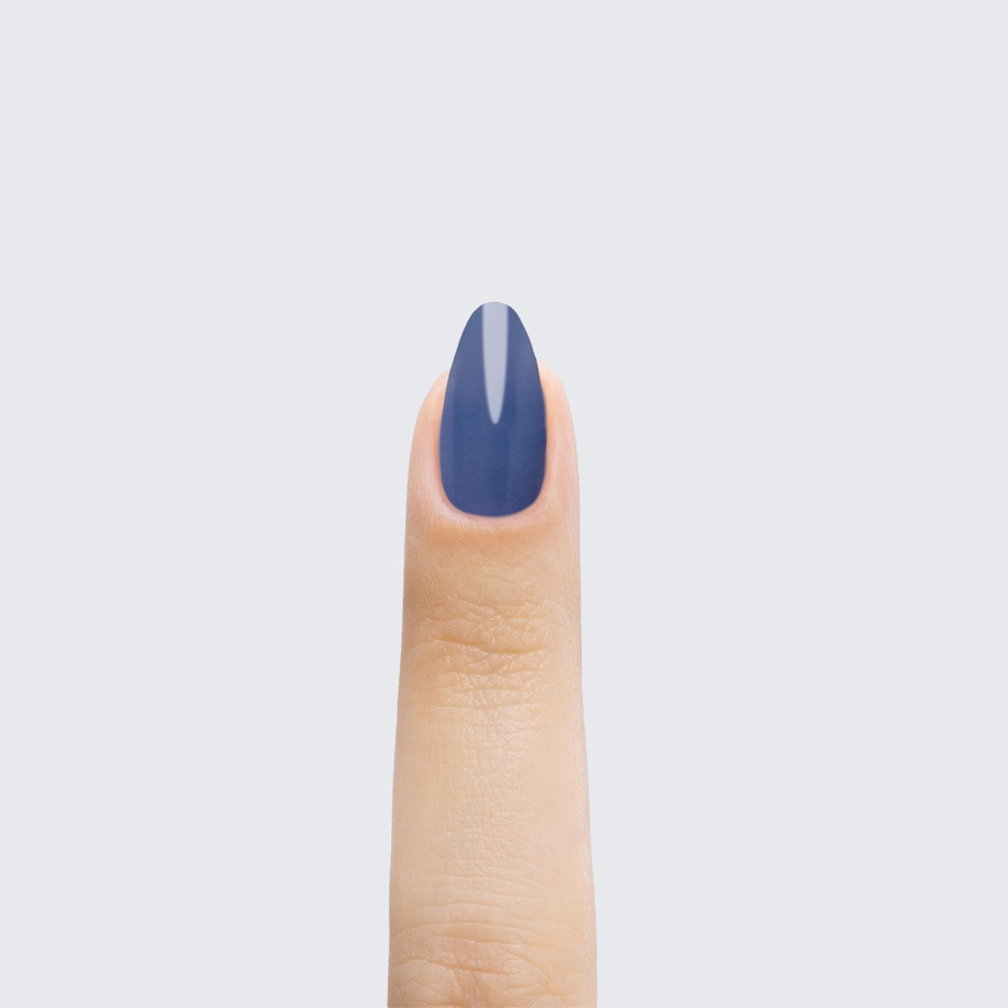 This warm blue polish is overcast with a lovely grey tint.